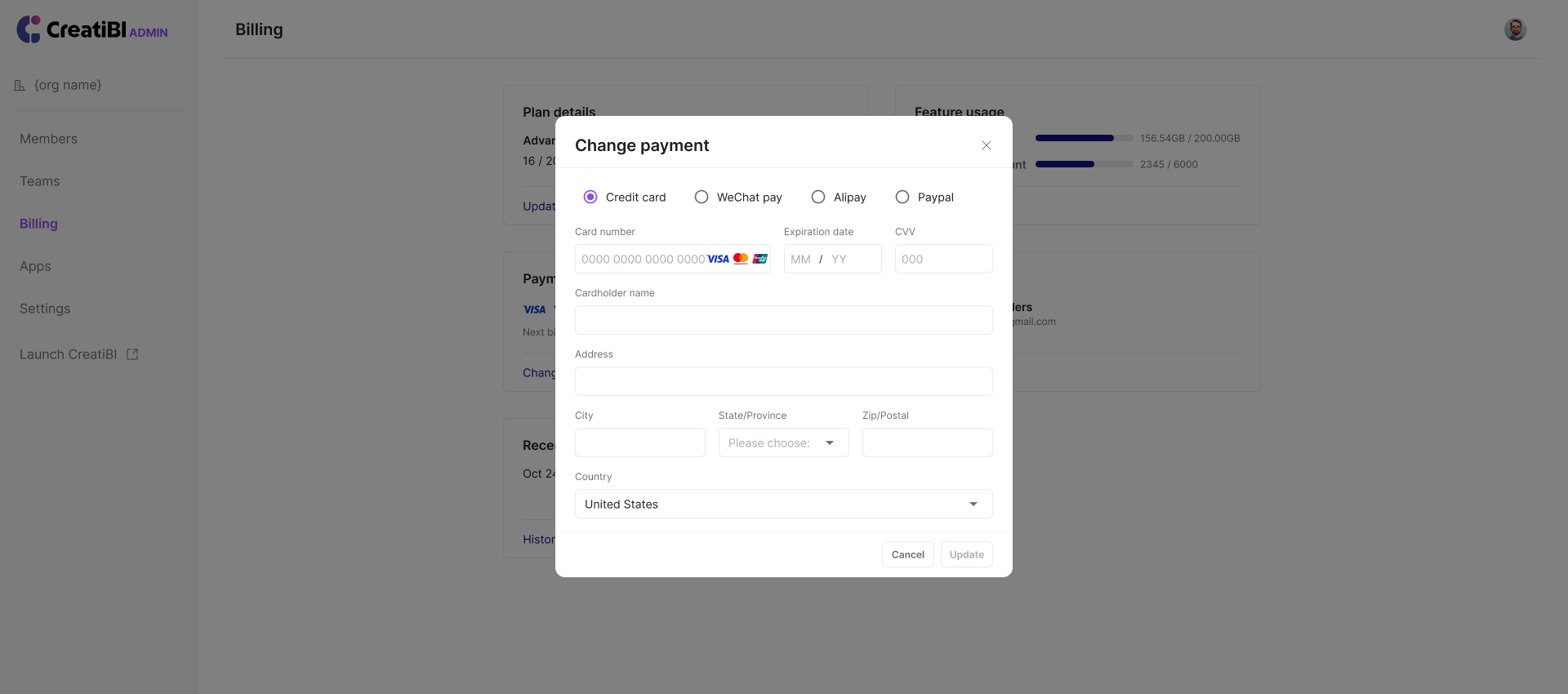 Currently, CreatiBI supports various payment channels, including Stripe, WeChat Pay, and Alipay. You can opt for automatic renewal or choose to purchase and renew manually.&#x20;