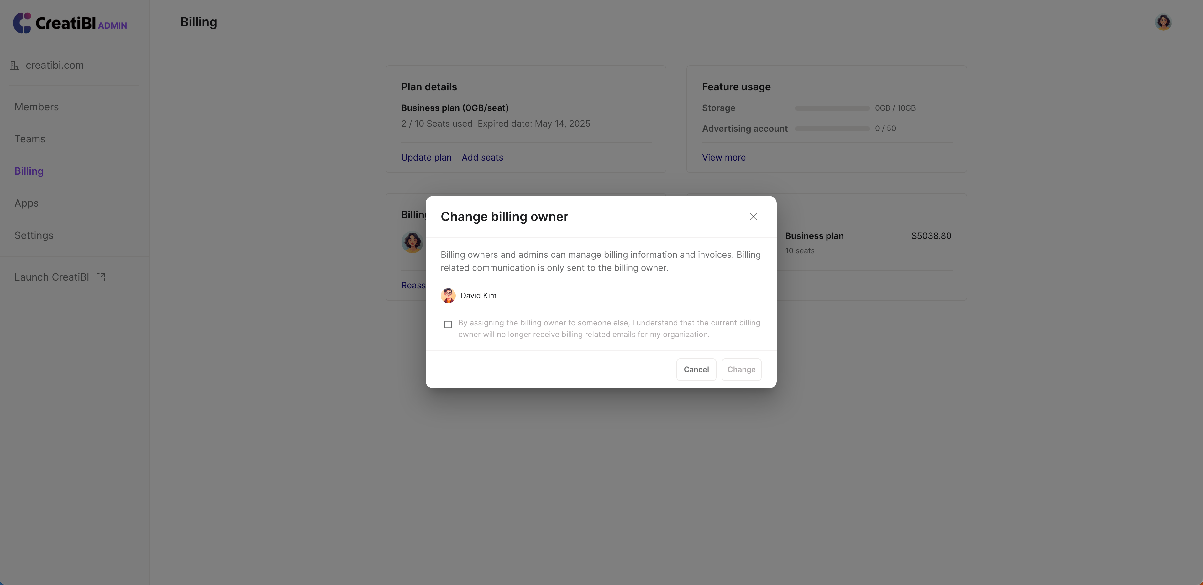 To change the billing owner: