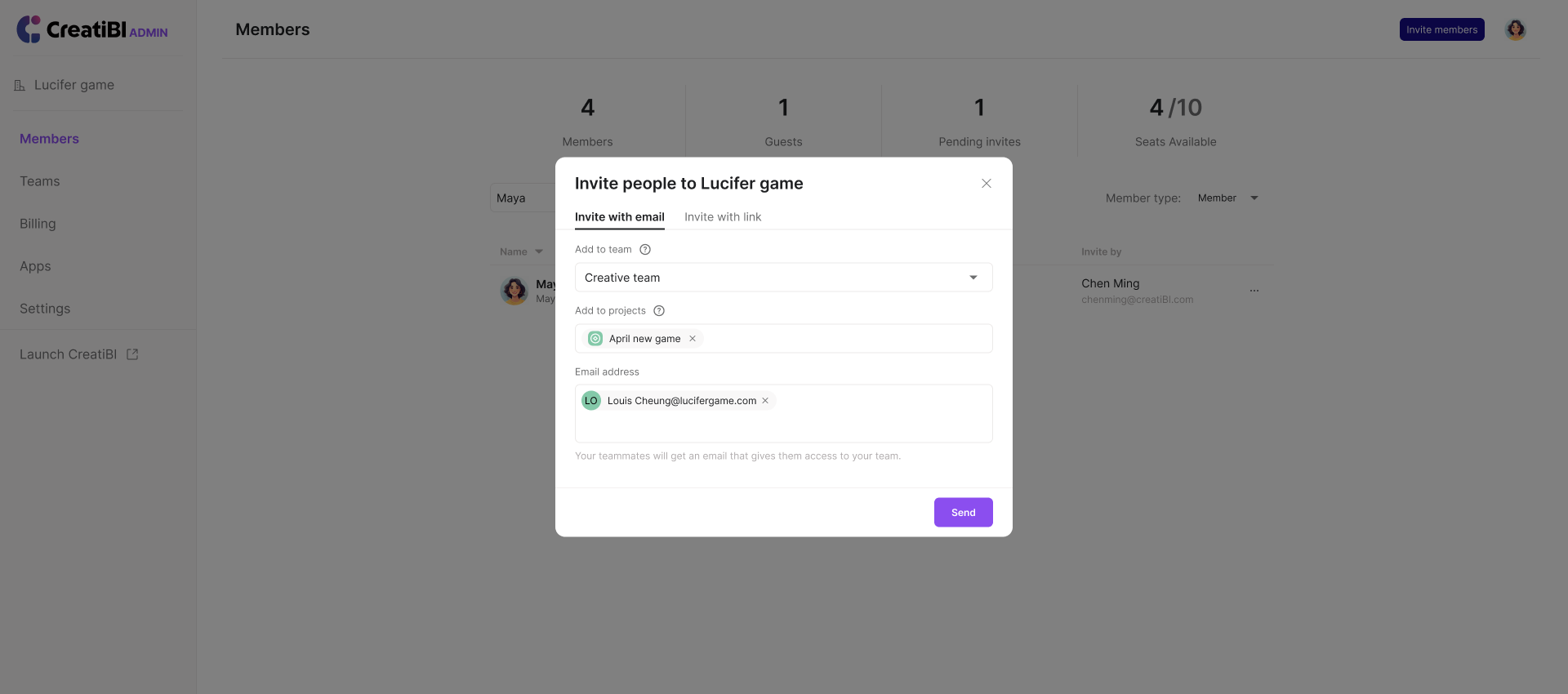 Click "Copy link" and share the link with others to invite them to the team.
