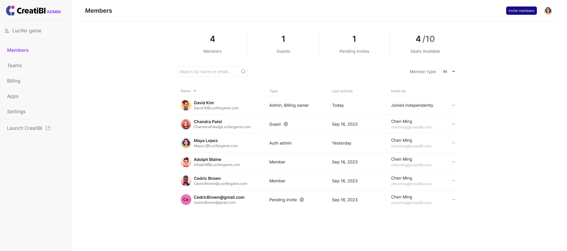 Search: Supports quick searches by member names or email accounts.