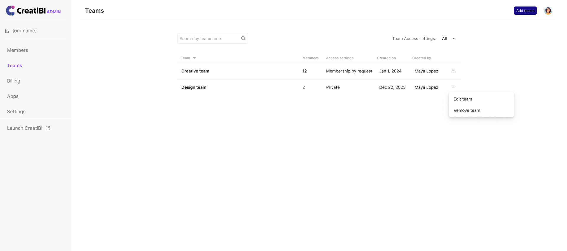 Click [here](https://help.creatibi.com/en-us/fundamentals/team) for more team setting details.