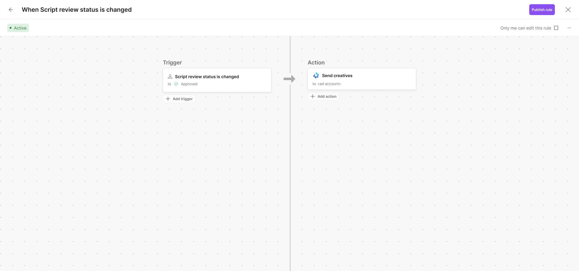 You can also create rules that trigger the upload of creatives to your Ocean Engine ad accounts automatically when specific actions occur in CreatiBI, like when a creative gets approved.&#x20;
