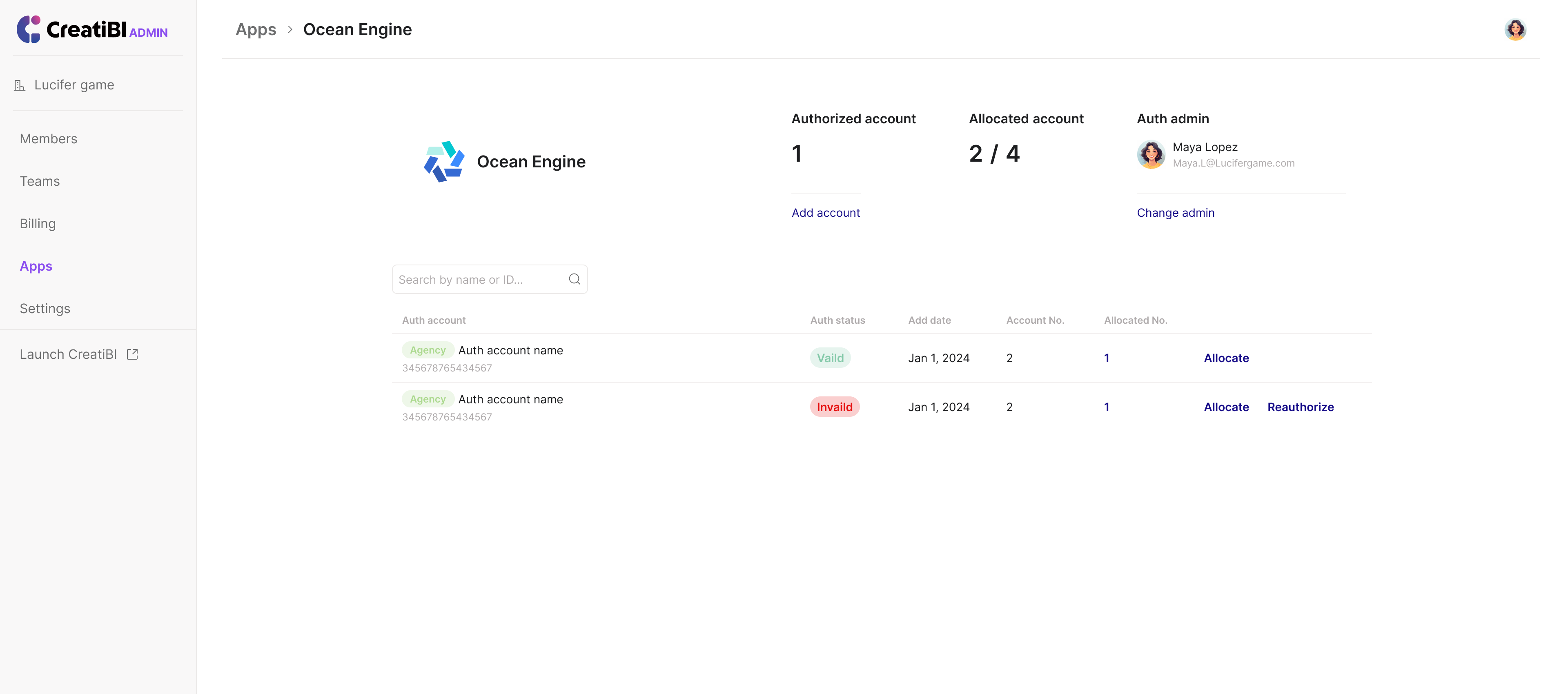 Step 2 - Assign Ocean Engine advertising accounts to team members
