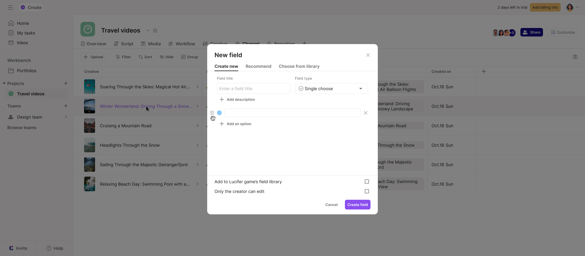 You can also select from the recommended field or import from your library;