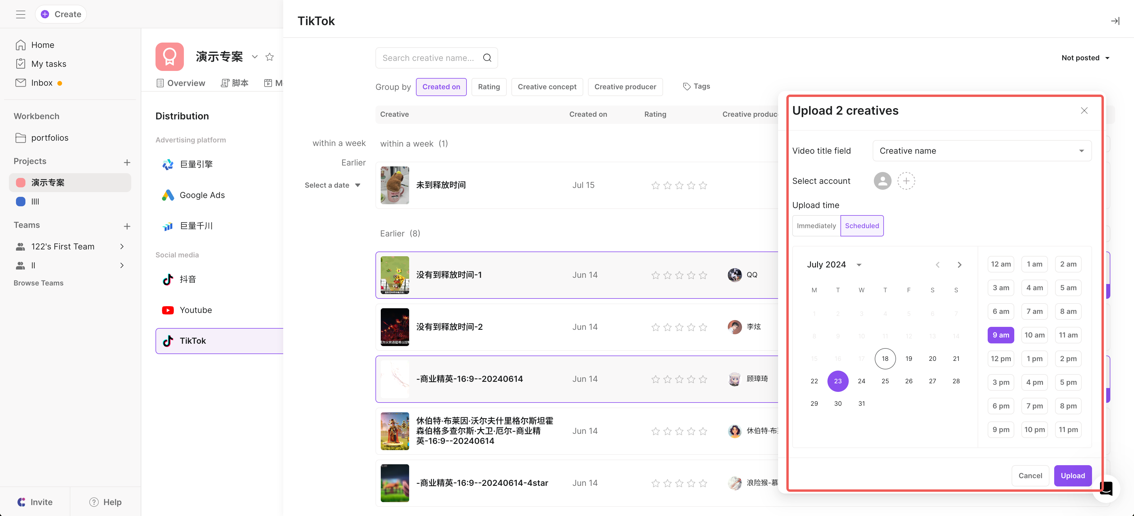 3. Select at least one creative;