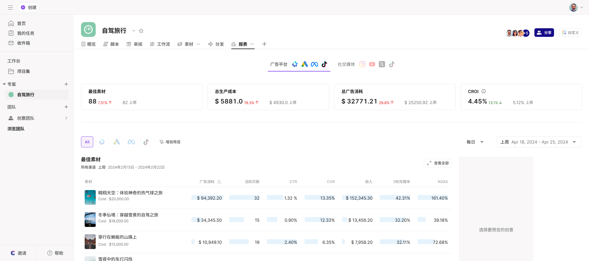 节省您的团队用于报告的时间和手动工作量，以便他们可以专注于制作更多获胜的创意。
