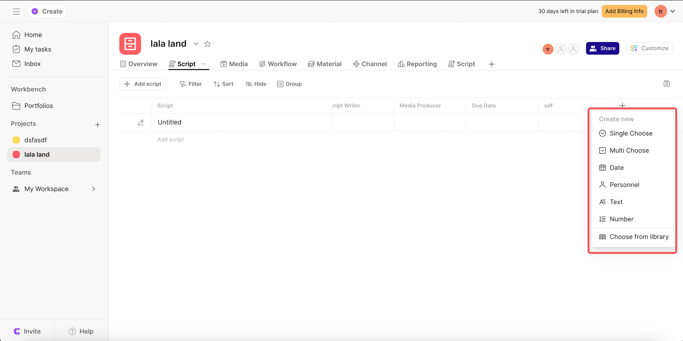 脚本表格中添加自定义字段